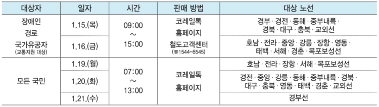 -교통약자 1월 15일, 이외 모든 탑승객 1월 21일